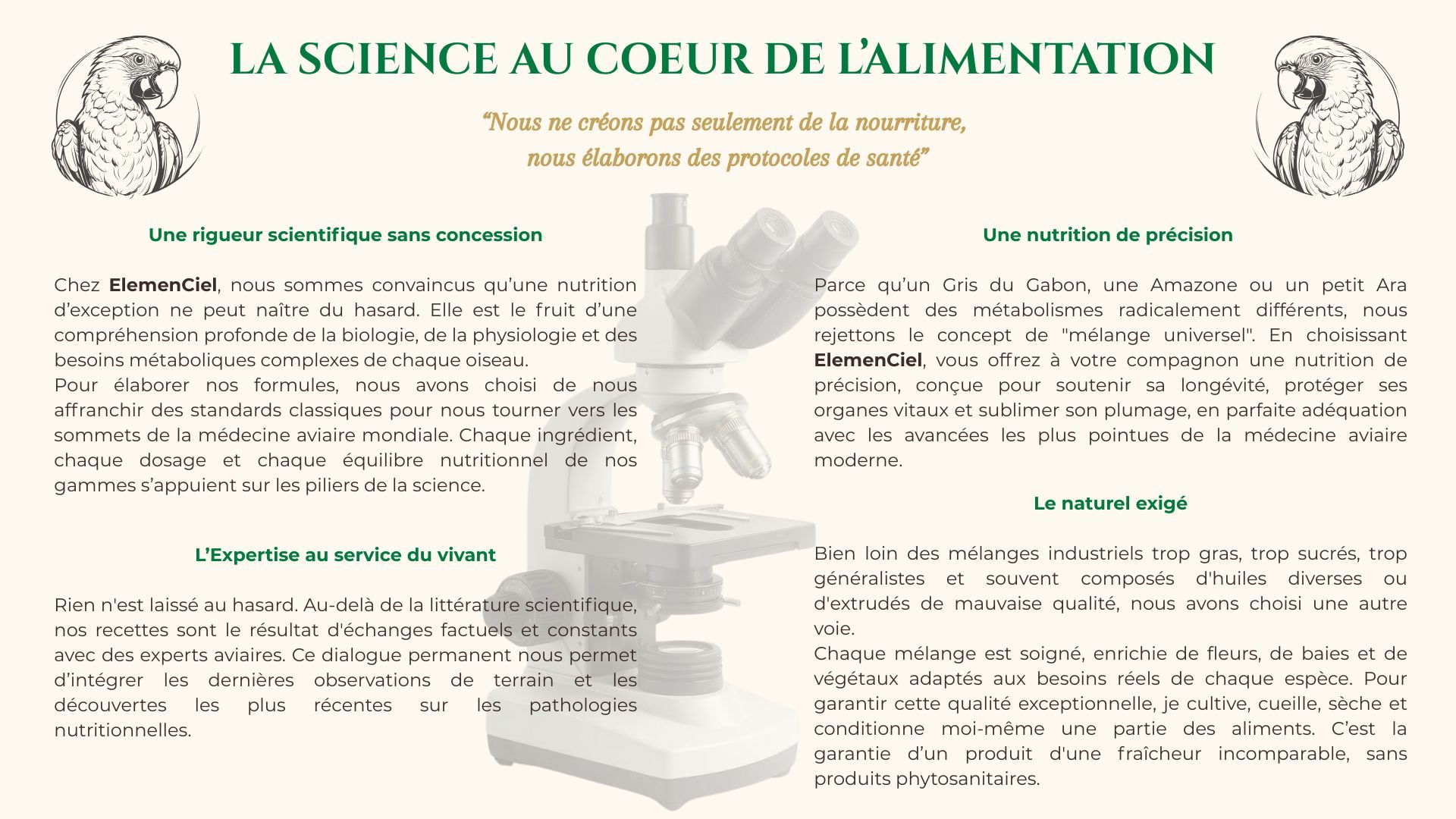 • Gamme nutrition pour tous les perroquets